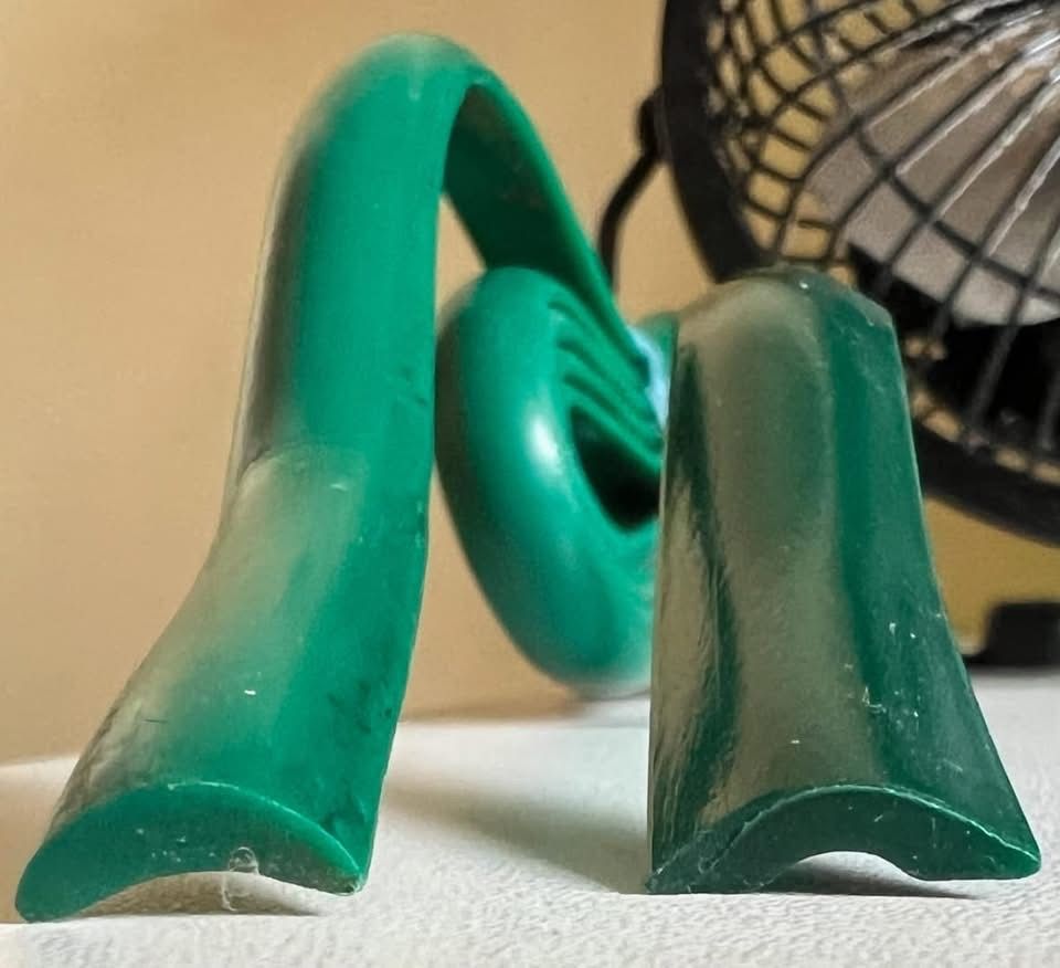 A sample of the 12mm rubber from a local caravan shop has been compared against the existing rubber. This was a darker green and wider of course as can be seen from the photos below.