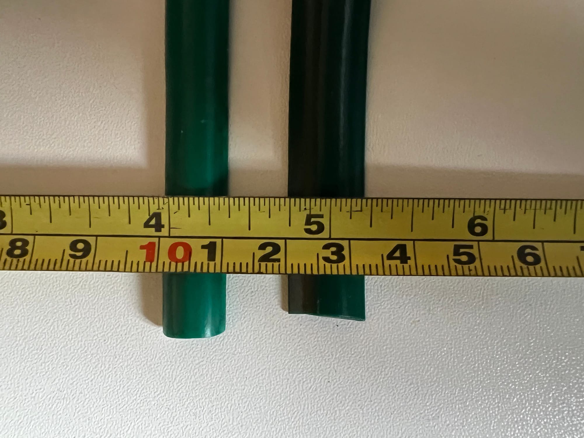 Another comparison image. The sample obtained is of a darker green and wider than required.