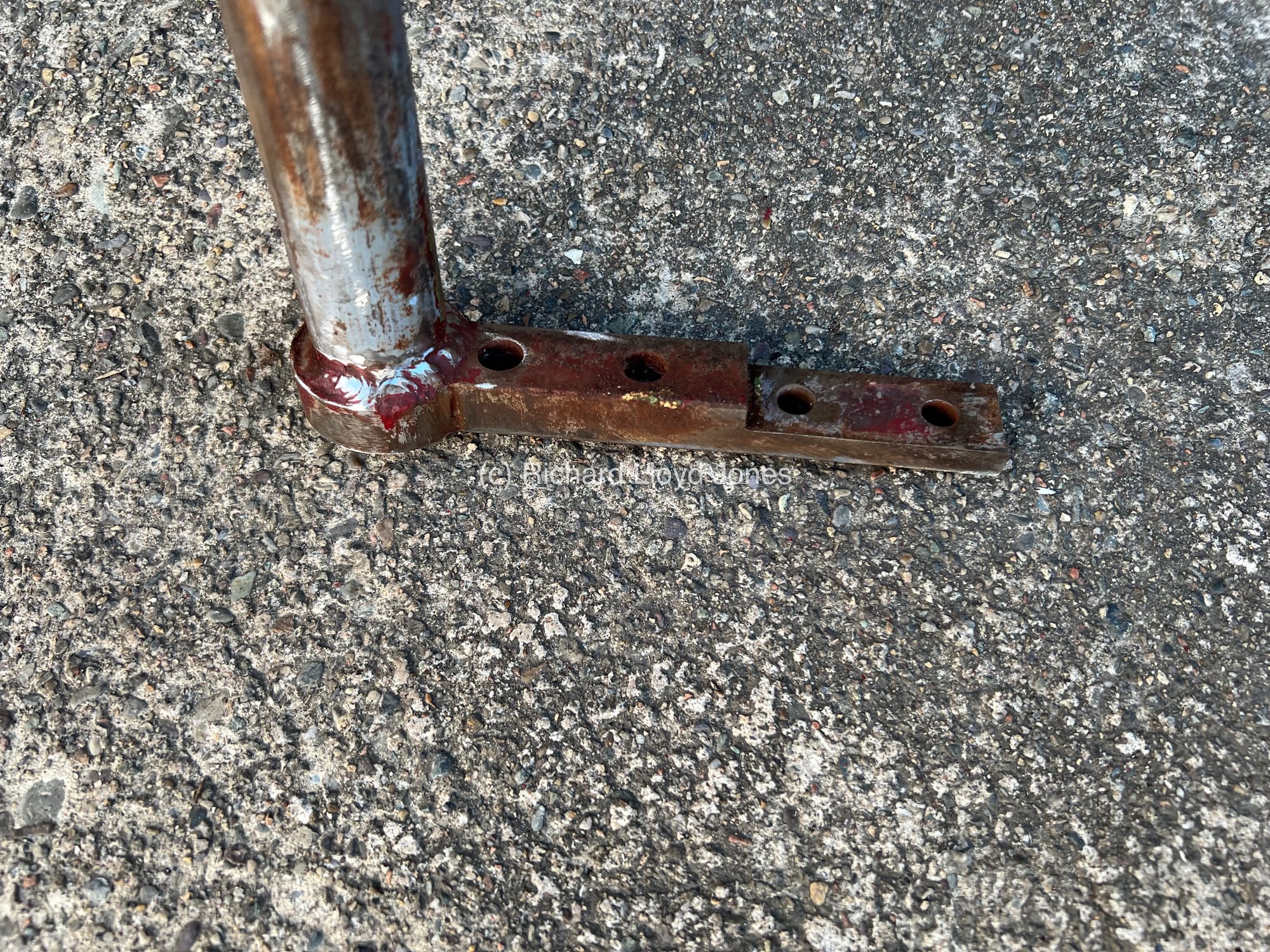 The lower section of the first entrance door pole to be treated with lower clamps removed for further treatment.