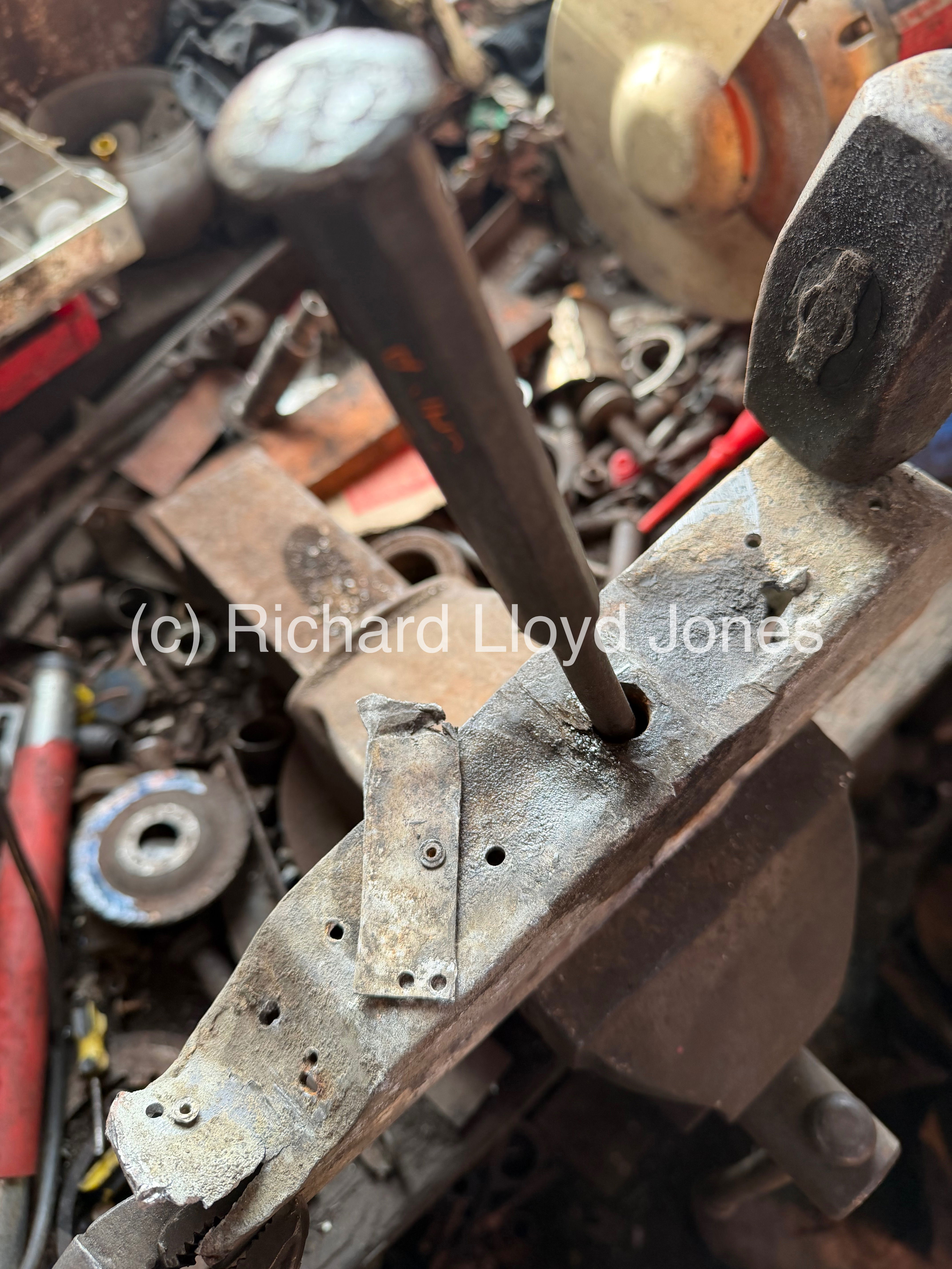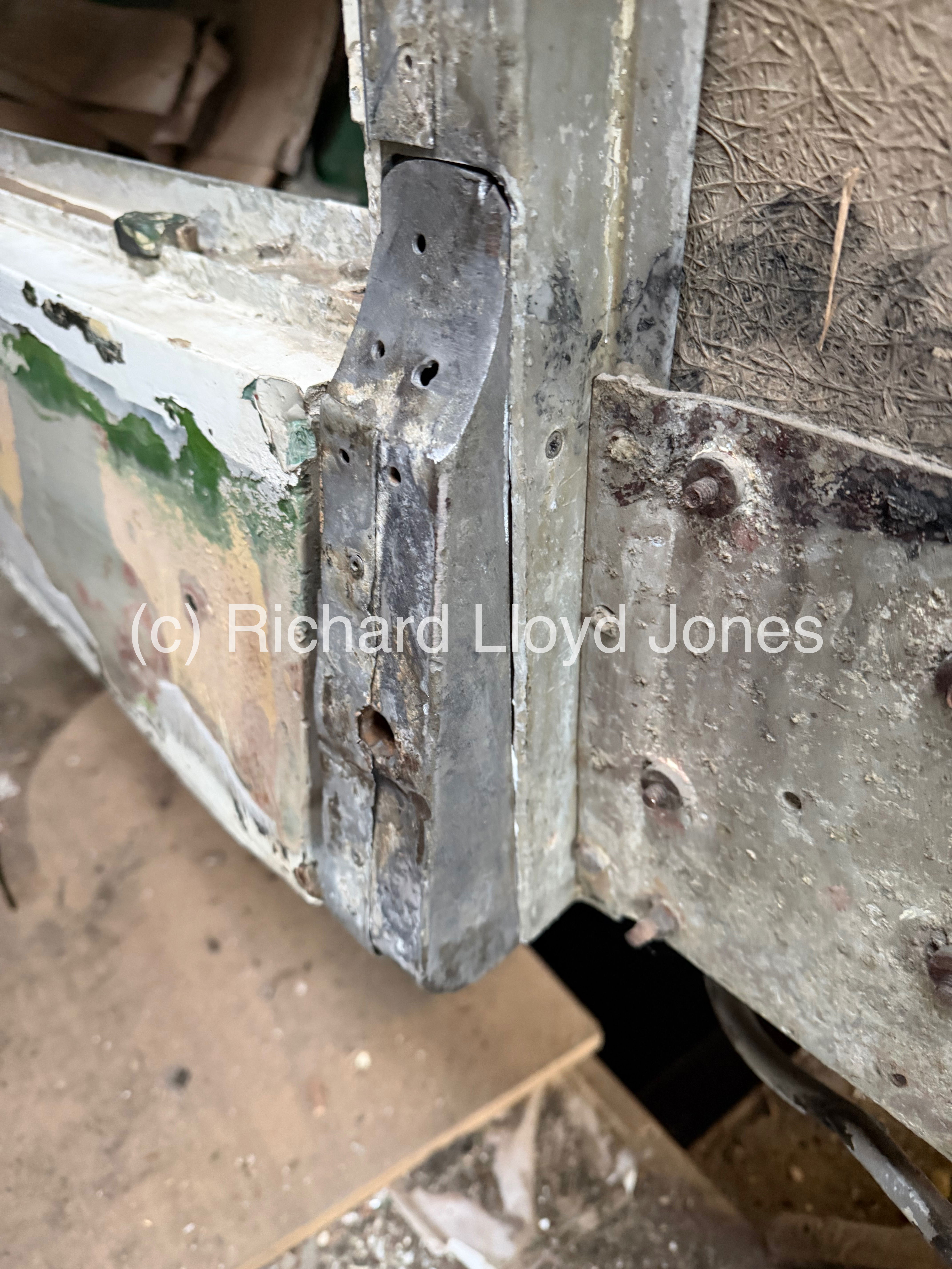 In the same way as the lower rear offside box section that holds the vehicle’s rear bumper caused many issues in removing the large bumper bolt which forced the removal of the box section, the same thing becomes the case with the nearside rear box section. Many hours are spent applying heat to the section and bolt (diolch/thank you Dewi!) before we hammer the bolt from each side until it begins to loosen and pushed through.