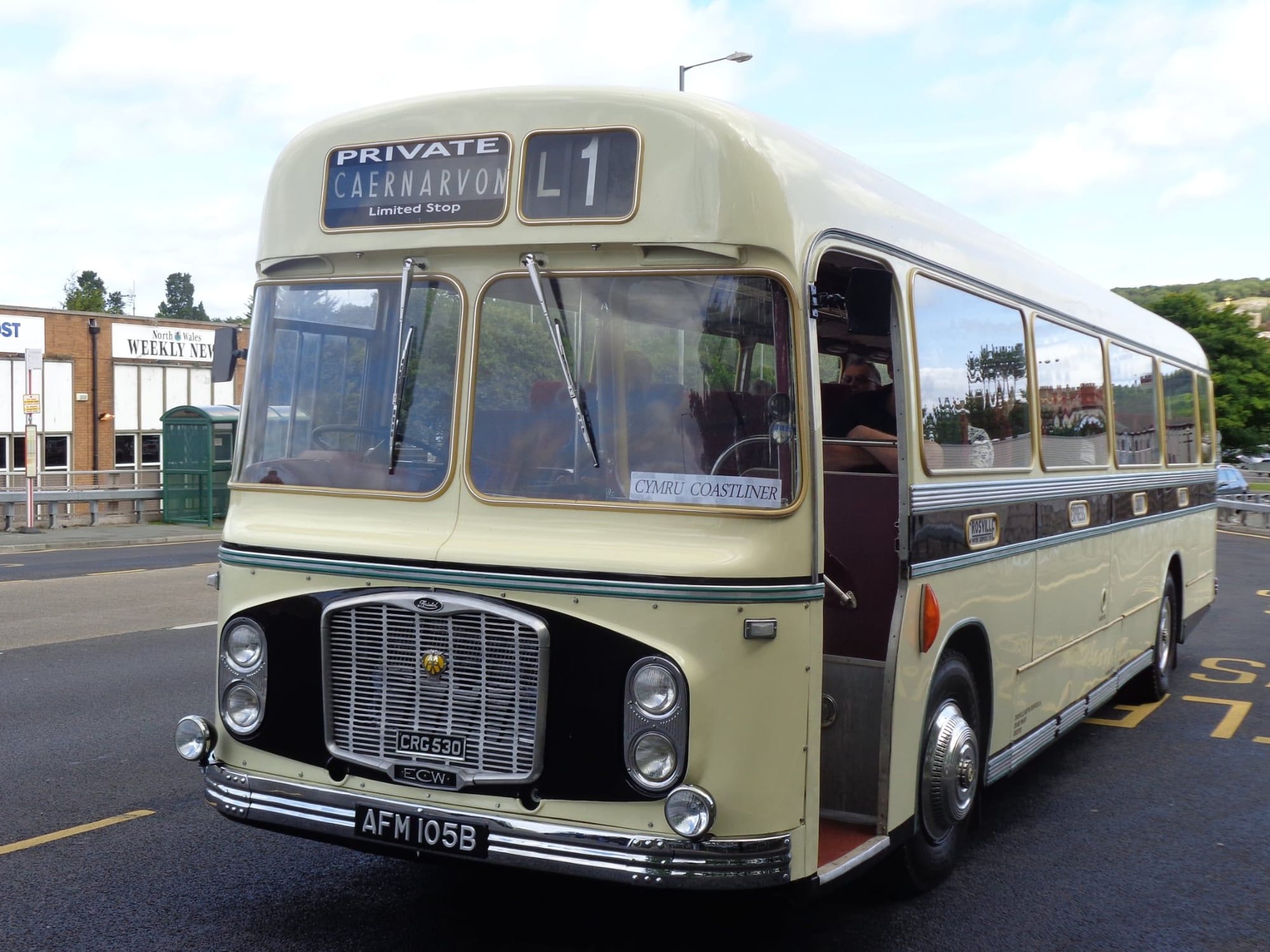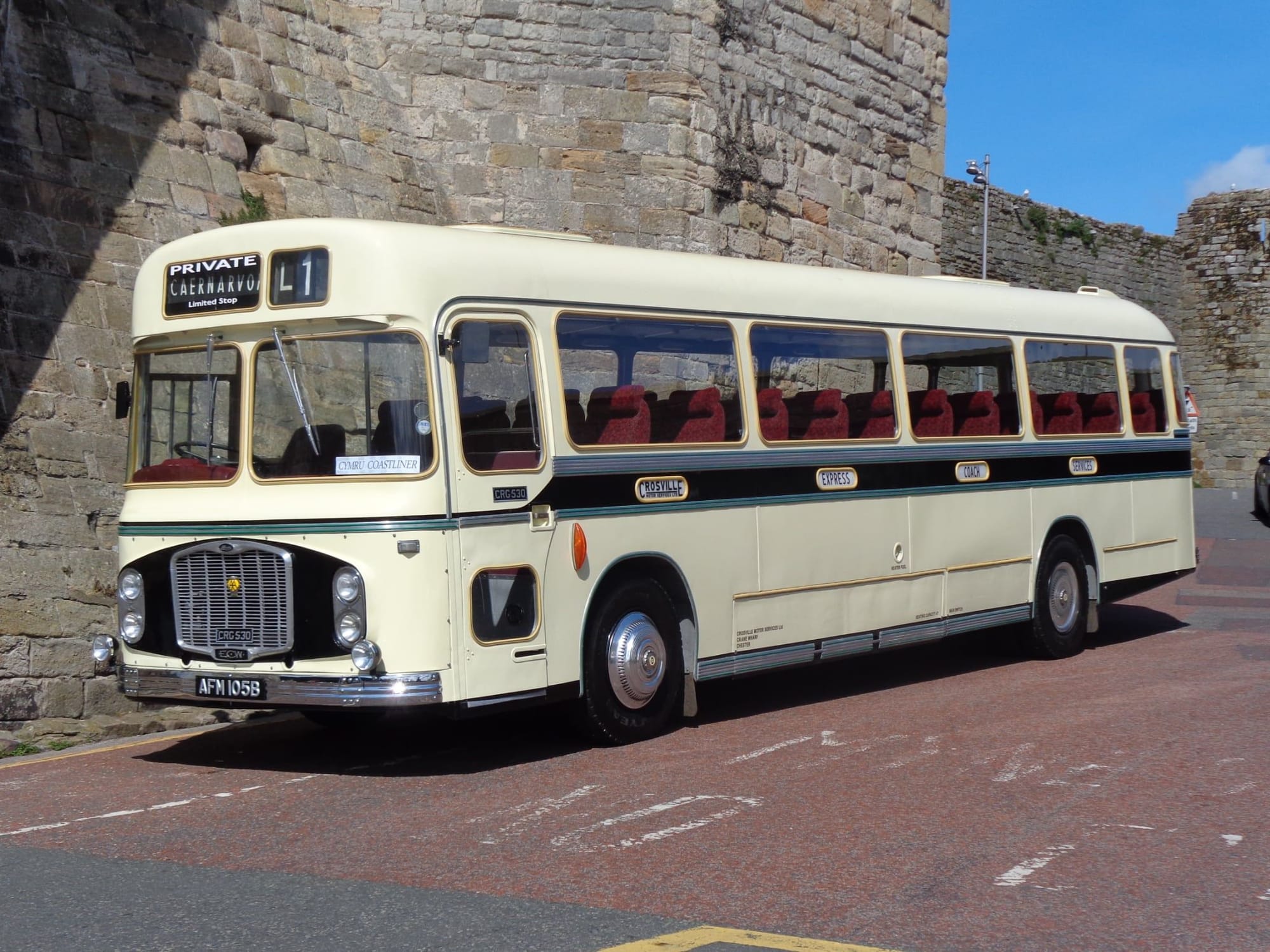 CRG106 recreating a daily occurrence back in the day, when the L1 Cymru Coastliner would depart to Chester from Caernarfon’s Y Maes (Castle Square) hourly.