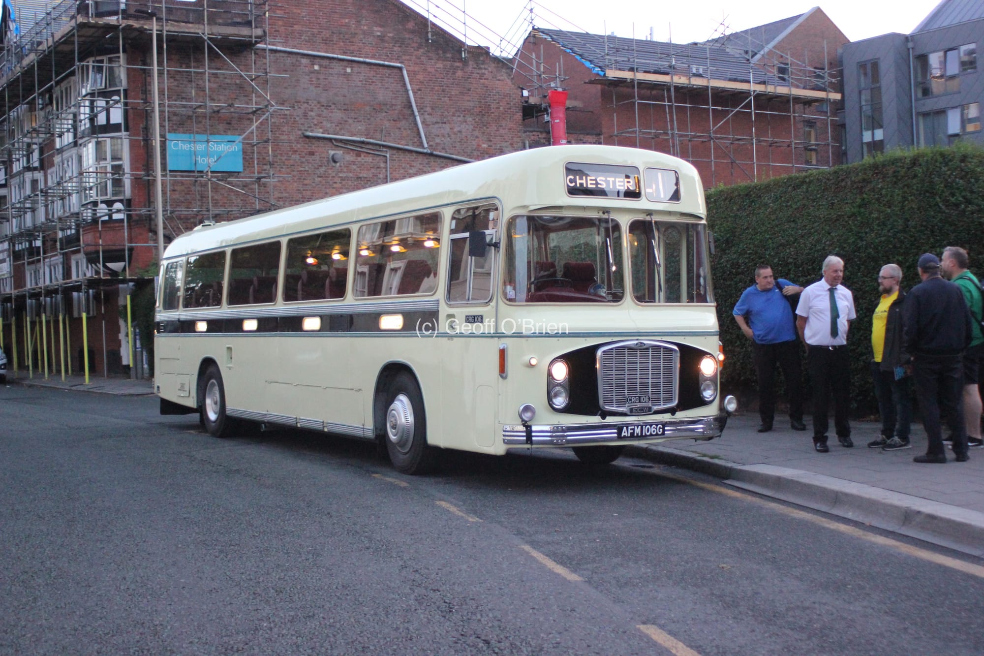 CRG106 having returned to Chester, with the vehicle’s proud owner, Steve Graham seen smartly dressed on the right in a white shirt and green tie.